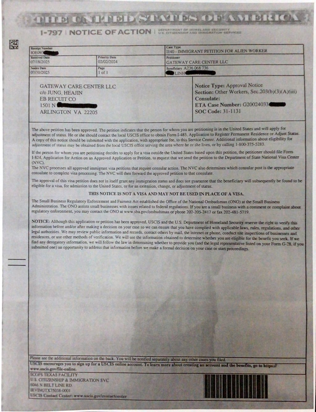 Form I-140 Approved Notice